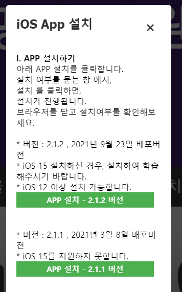 9월 중순 경 IOS15가 배포됨에 따라, 교육원 모바일 어플 업데이트 및 설치 관련 공지드립니다.
