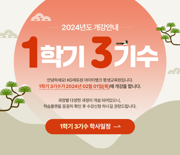 본 교육원의 홈페이지는 크롬 및 엣지에서 수강 및 시험응시가 최적화 되어있습니다. 모바일의 경우 전 기종에서 수강이 가능하며, 학습자님들의 편의를 위해 수강환경에 대한 지속적인 점검 및 업데이트를 진행하고 있습니다.
