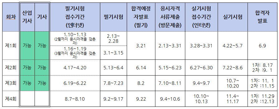 ④ 2023년도 시험 일정(산업기사 진행 회차 1/2/3, 기사 진행 회차 1/2/3)