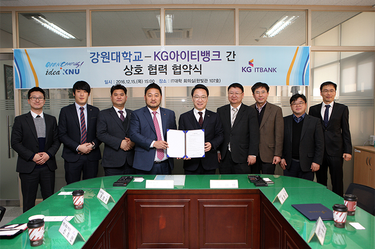 공지사항 학점은행제 소식 우리원 소식 이벤트 소식 수강후기 우리원소식 게시글 상세보기 KG아이티뱅크 - 강원대학교 ICT전문인력 양성 업무협약 관리자 | 추천 0 | 반대 0 | 조회 4410 | 2017-02-16 오후 4:26:03 IT분야 교육‧취업 분야 전문기업 KG아이티뱅크가(대표이사 문용우) 지난 2016년 12월 15일(목) 강원대학교와 ICT전문인력 양성을 위한 업무협약을 체결했습니다. ▼ 덧글 0개 ▲ top