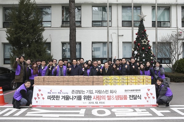 [서울와이어 이명철 기자] 종합교육기업 KG에듀원은 12월 11일 서울시 종로구청에 사랑의 쌀 1000kg와 라면 180박스를 전달했다고 밝혔다.